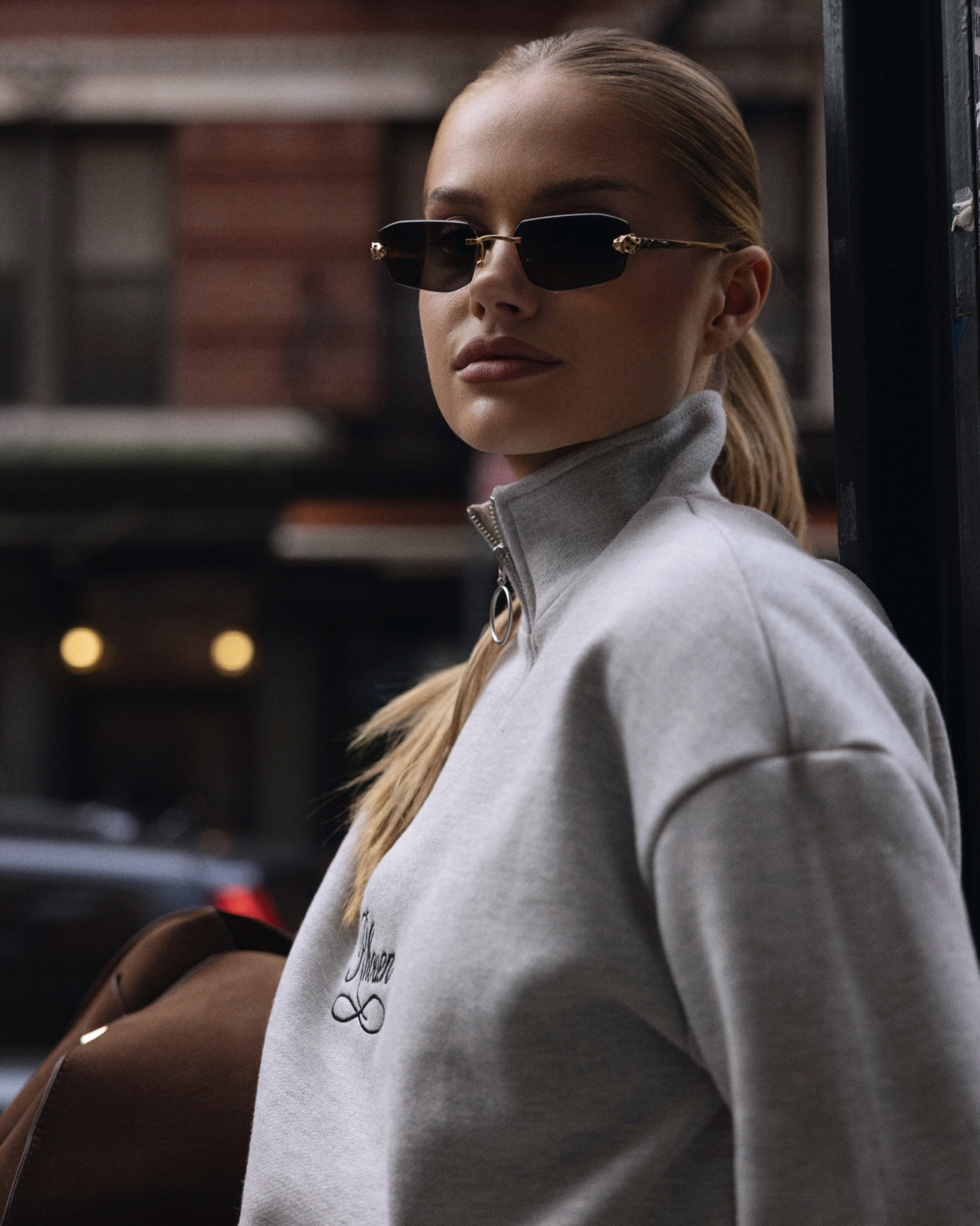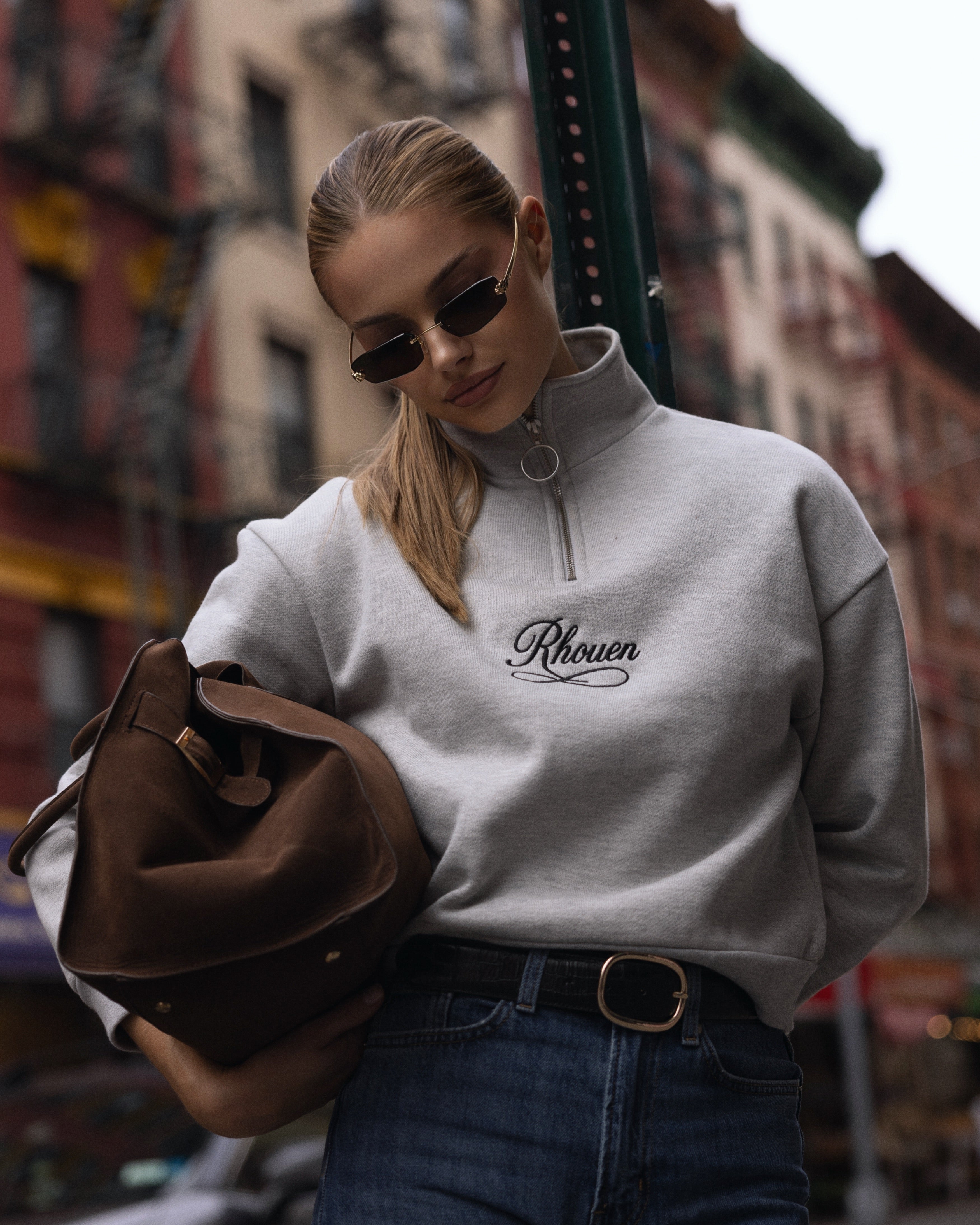Gefertigt aus 100 % Baumwolle mit 480 GSM – weich im Griff, kompakt im Aufbau und mit feiner Struktur. Der kurze Reißverschluss und der Stehkragen sorgen für eine klare, sportlich-moderne Silhouette.